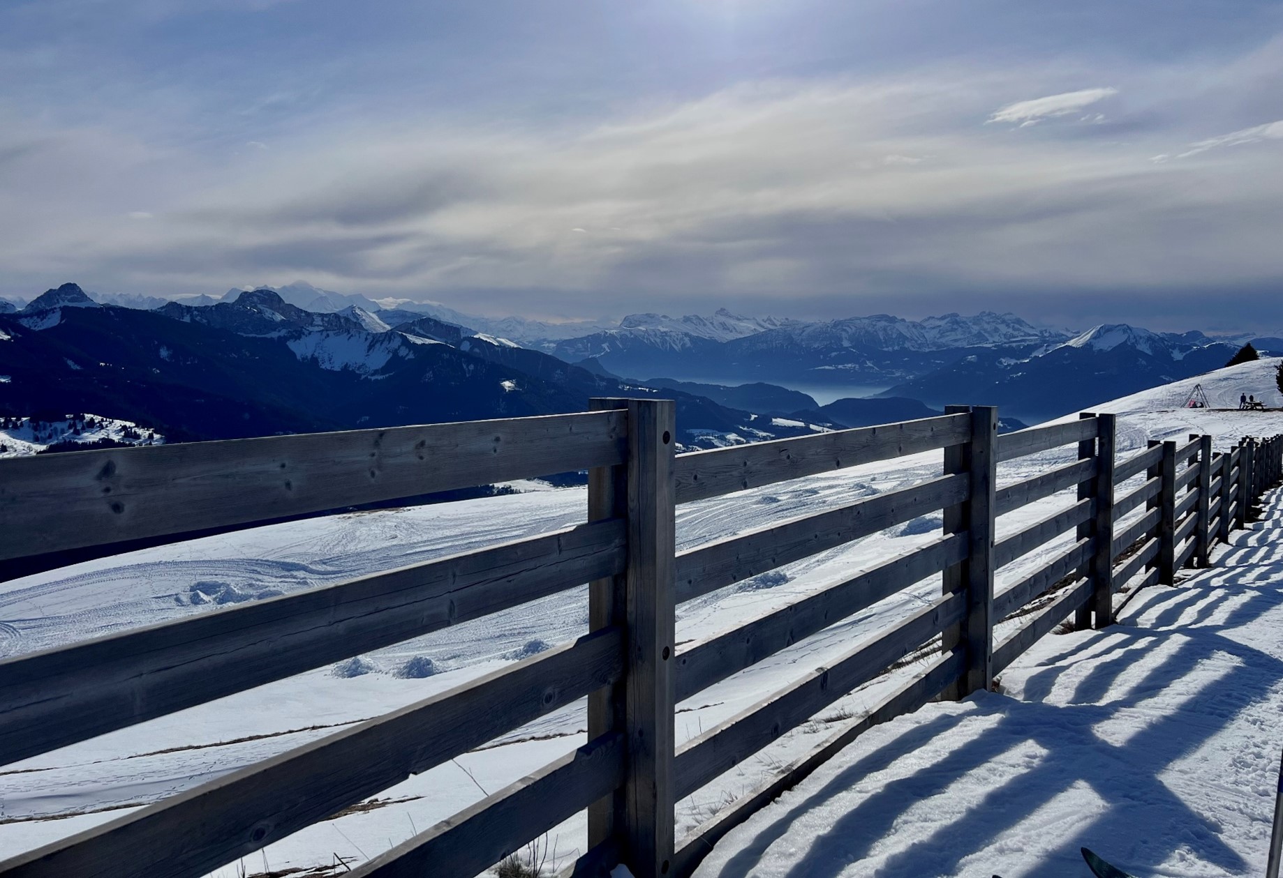 "J’ai décidé de prendre cette photo car pour moi elle représente parfaitement ce lien important entre la géométrie naturellement présente dans la nature et la nature en elle-même. Sur cette photo, les droites parallèles de la barrière guident le regard vers un point de fuite situé entre cette mer de nuage qui cache un lac et les montagnes. On y retrouve bien la notion de perspective, où des droites semblent se rejoindre à l’infini. J’ai choisi le titre